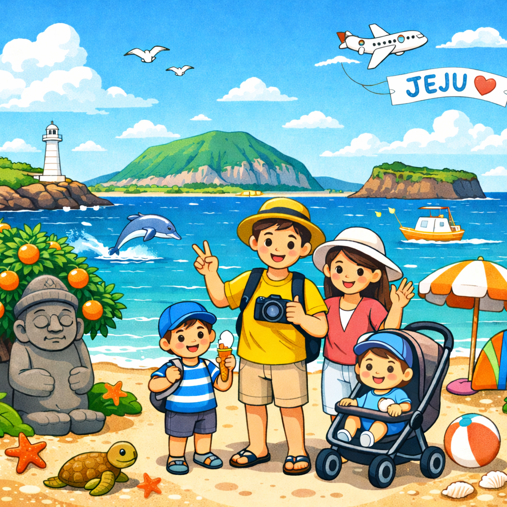성인 2명, 초등학생 1명, 4개월 유아 1명 기준으로 짠 제주도 6박 7일 가족여행 일정표입니다. 신창리 숙소를 베이스로 서쪽·서귀포·동쪽·우도까지 균형 있게 넣고, 유모차 이동, 공항 동선, 식사 추천, 체크리스트까지 한 번에 정리했습니다.