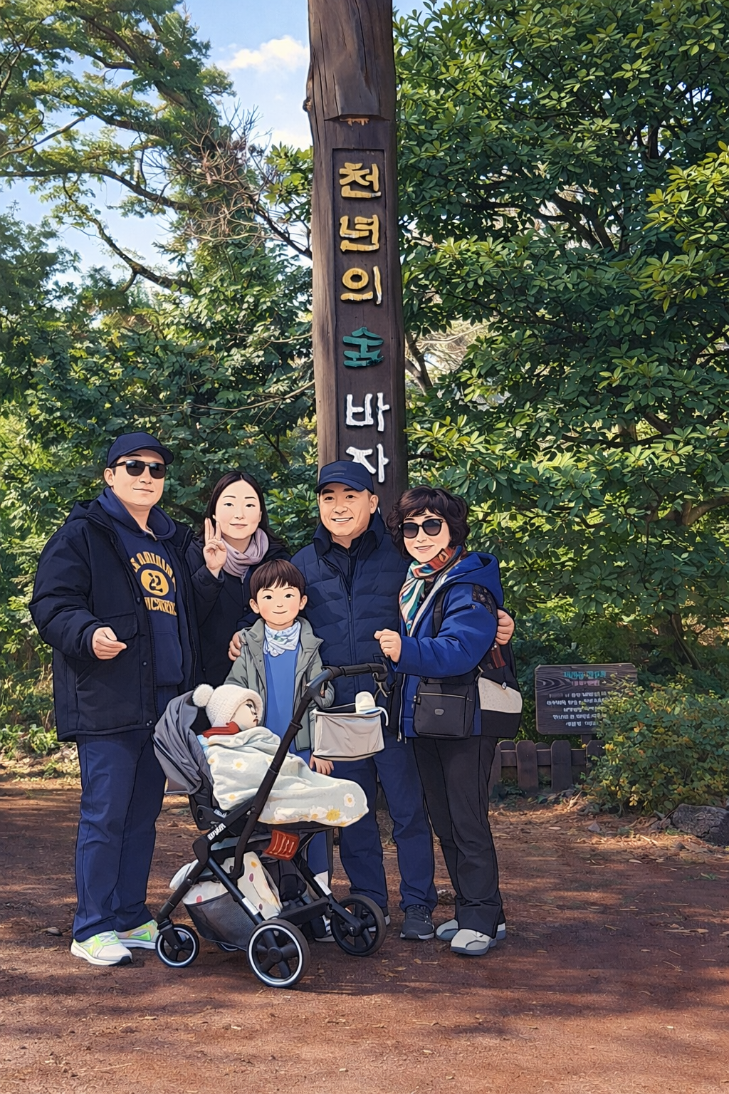 | 오후 | 컨디션 좋을 때만 1곳(천지연) 추가 → 신창리 한경도서관 복귀 | 아이 낮잠 타이밍 고려해 중간 휴식 1회 필수 |
